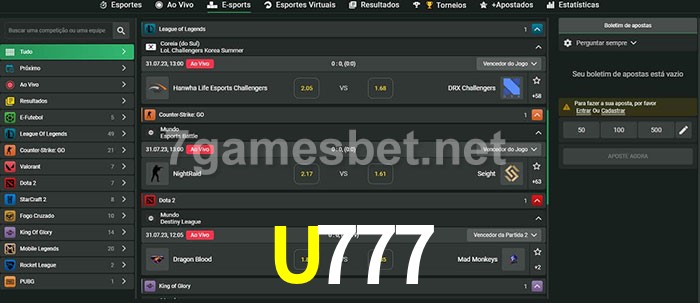 A aposta U777 oferece aos jogadores a experiência mais conveniente de apostas em eSports!